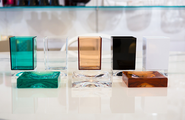 Boxy, la nouvelle ligne de porte-savons et de porte-brosses à dents Kartell by Laufen signée Ludovica et Roberto Palomba, vient compléter les solutions d’accessoires pour salles de bains. Le porte-savon est proposé en transparent, rose et vert transparent. Le porte-brosses à dents se présente quant à lui avec une base transparente et un corps décliné en plusieurs versions brillantes (noire, blanche, rose et verte transparente). Ces deux accessoires peuvent s'adapter au bureaux pour un usage de porte crayons et porte trombonnes.