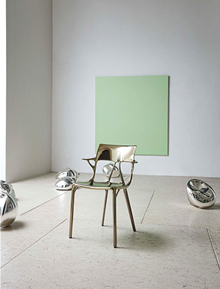 A.I. Metallisée est la nouvelle version métallique de la chaise réalisée pour la première fois à partir de matières recyclées où l'esthétique et les exigences structurelles, associées au design génératif, demeurent intactes. A.I. Metal est disponible dans les couleurs suivantes : bronze et titane.