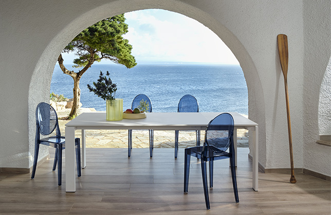 Une chaise née de lignes classiques, le dossier arrondi rappelle la forme des médaillons anciens, tandis que le siège est linéaire et géométrique. Victoria Ghost est en polycarbonate transparent ou coloré et est réalisée dans un moule unique à injection. Stable et confortable, elle ne craint ni les griffures ni les chocs et résiste aux agents atmosphériques. Encore une chaise réalisée grâce au savoir-faire technologique que Kartell a développé au fil des années, créant des objets qui l'ont rendu célèbre dans le monde entier. Un produit à forte personnalité et à grand charisme qui s'imposera avec élégance quelque soit le type d'ameublement. Victoria Ghost est disponible dans deux nouveaux coloris. En plus des versions classiques, des modèles inédits bleu poudré et ambre viennent enrichir le catalogue.