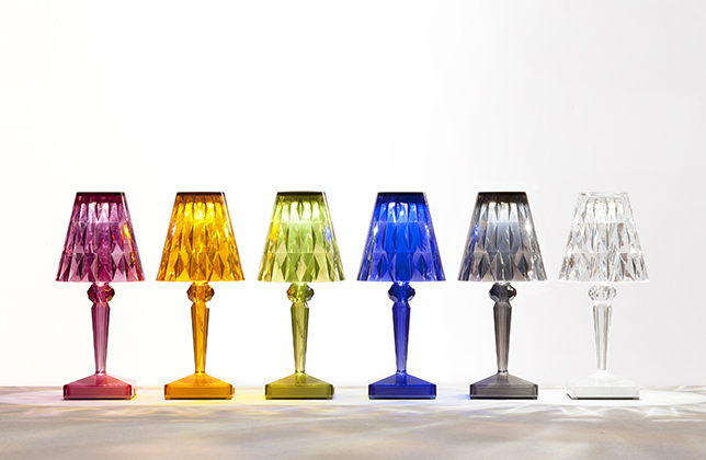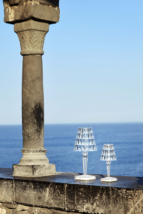 Battery, l’incontournable lampe à abat-jour aux dimensions réduites de Kartell, est réalisée en PMMA transparent. La grande innovation de ce produit réside dans le fait qu’il est 100 % recyclable grâce à une simple prise électrique et qu’il dispose d'une autonomie allant jusqu'à 8 heures. Un atout qui permet de déplacer la lampe avec beaucoup de facilité. Elle est donc idéale pour les espaces sous contrat ou les bars/restaurants en plein air. Battery se compose d’un réflecteur de couleur cristal à surface facettée donnant naissance à d’envoûtants jeux de lumière ainsi que d’une structure déclinée dans trois coloris métal d'une grande finesse.